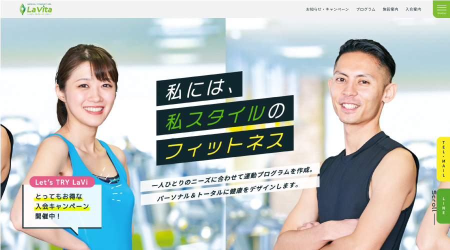 La Vita様 コーポレートサイト利用者への情報提供をスムーズに。高頻度な更新でアクセス数もアップ。La Vita様(メディカルフィットネス・スパ) 山形県山形市【主な更新・管理内容】- 各ページ掲載内容の更新